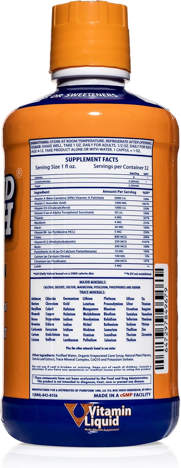Daily liquid multivitamin. 1oz a day very potent vitamins and minerals.